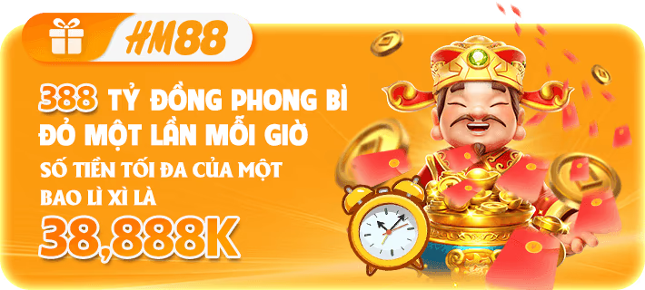 Sự kiện ưu đãi cực hấp dẫn từ Nhà cái HM88, 388 tỷ bao lì xì may mắn được phát mỗi giờ cho thành viên. Phong bì độc đắc giá trị lên tới 38.888.000 VND.